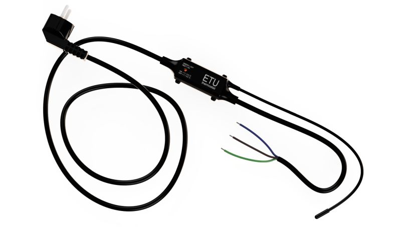 *price, EXW ELPOS Ltd., Požega, Croatia, valid from 1.9.2024.The ETU is a simple, precise and reliable electronic thermostat with a plug. It is designed to control electric heating cables for the purpose of frost protection, and is set to turn on the heating when the temperature drops to 2.5 °C, and to turn it off when it rises above 4.5 °C. (There is also a variant of the ETU thermostat intended to stimulate the alcoholic fermentation which turns on at 16 °C and turns off at 18 ° C).