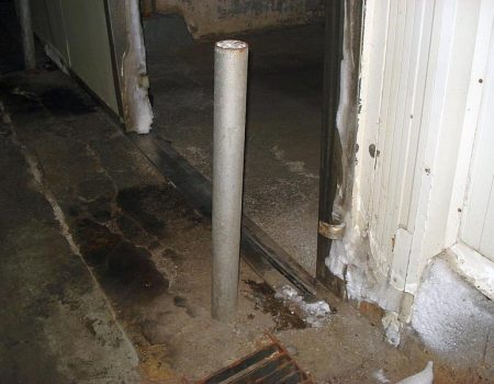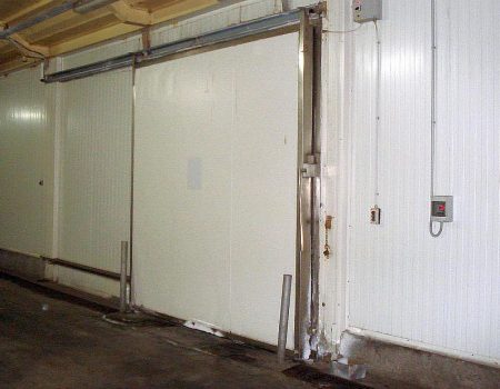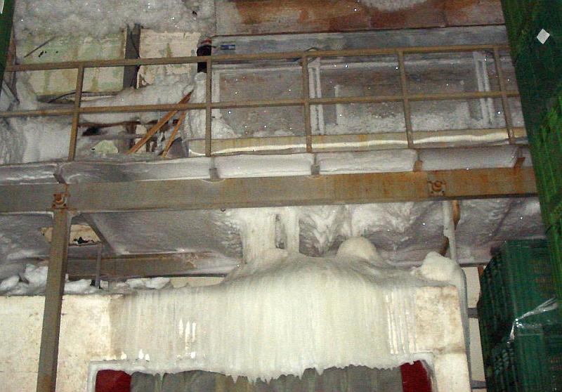 When opening the cooling chamber door, warmer and more humid air, from the anteroom, enters the cooling chamber and there the moisture condenses very quickly, drips from the ceiling and walls and freezes on the floor. This process is most intense in the area of the threshold of the cooling chamber door, so that a dangerous ice film is formed on that part of the floor, and the door seals stick and tear when the door is opened.