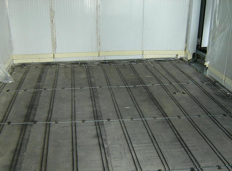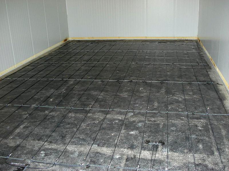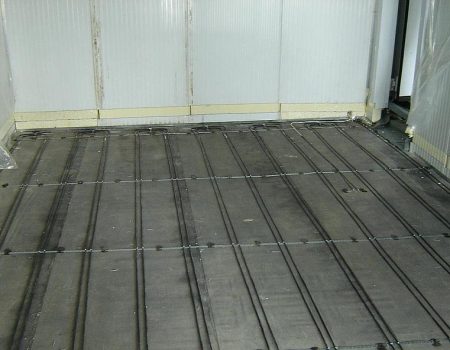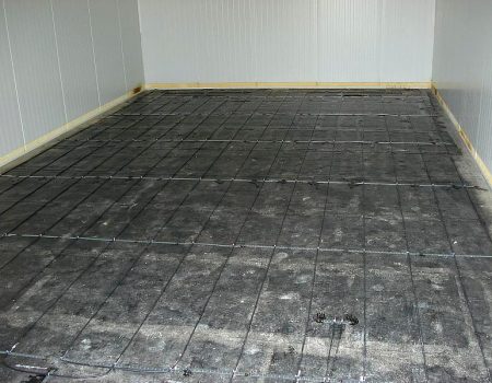In order not to irrationally consume materials, and to safely prevent the destruction of the building, it is necessary to create a “thermal barrier” by heating the floor and ground under the thermal insulation of the cooling chamber. The possibilities of such heating are different (tunnels with hot air, pipelines with hot liquid medium), but from the point of view of investment costs, ease of installation and efficiency of temperature regulation, the most suitable solutions are electric heating cables (usually SSAP type) or heating foils for cold stores ).