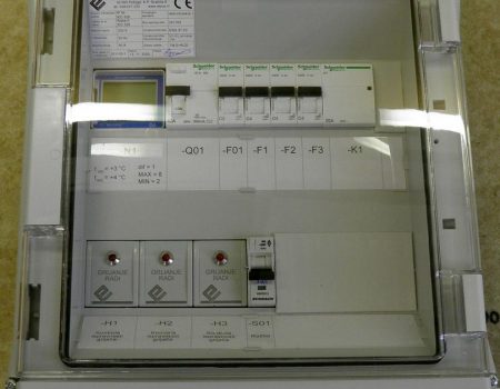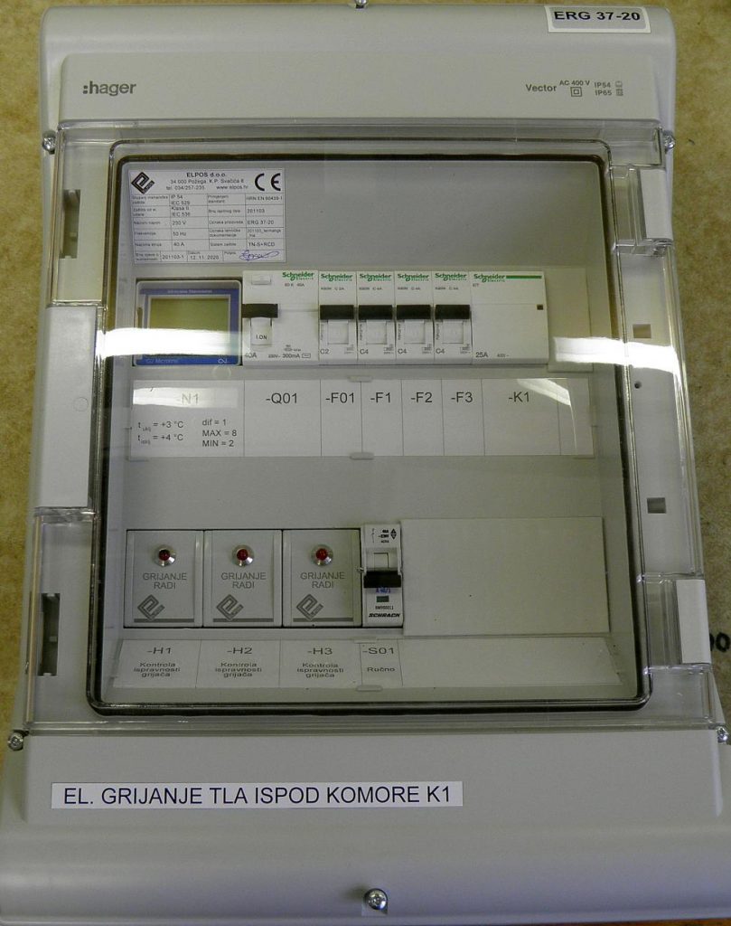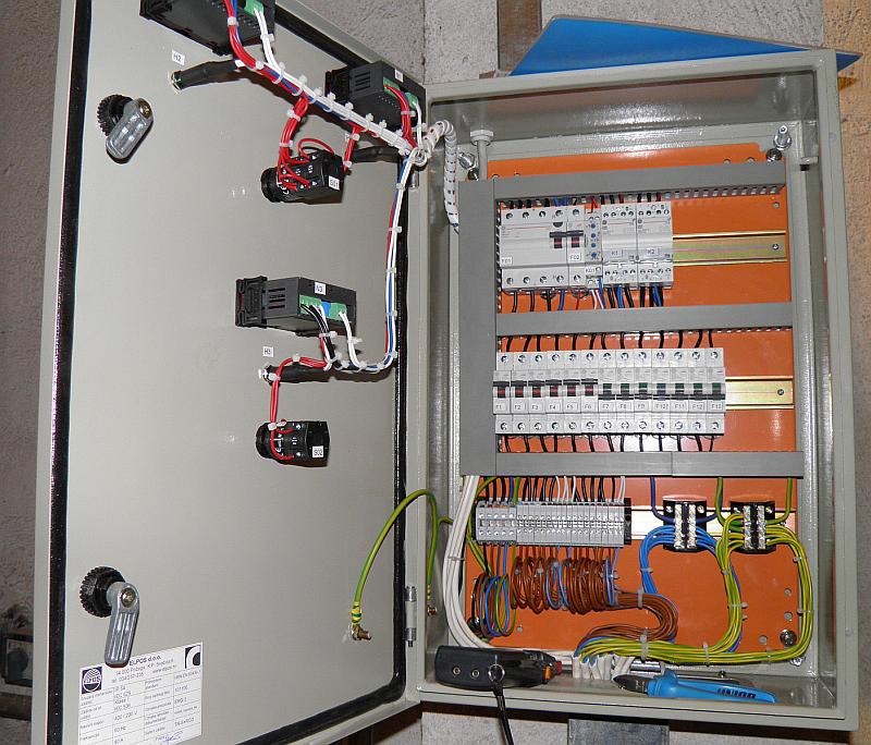 In electrical control boxes for controlling the operation of heating cables or heating foils for underfloor heating (RGH), which we make, we must install a circuit with a current transformer and LED for continuous control of the correctness of installed heaters. Also in control boxes we install electric heaters to prevent moisture condensation.